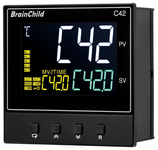 In plastic injection molding equipment, mold temperature stability directly affects dimensional accuracy, surface quality, and cycle consistency. The C42 controller supports Fuzzy Logic + PID, Heat-Cool control, 200 ms fast sampling, Auto-Tuning, Soft Start, alarms, event inputs, RS-485, retransmission, and remote setpoint, helping manufacturers build a more stable, responsive, and integration-ready temperature control system.