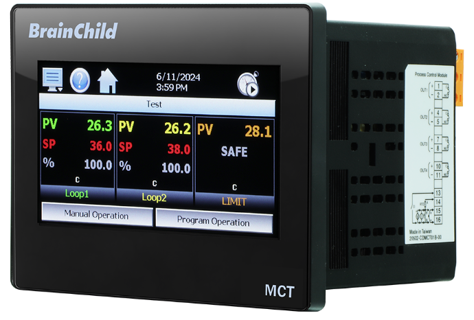 在半導體製程設備中,溫度控制不只是基本運轉條件,更直接影響製程穩定性、批次一致性與後續追溯管理。MCT 多迴路控制器整合多迴路控制、高限保護、趨勢圖表與資料記錄功能,並支援遠端監看、操作稽核追蹤、數位簽章與 升降溫程式控制,可協助設備建立更完整的溫控與資料管理架構。MCT 最多可支援 3 個控制迴路、64 段程式控制,並可將資料長期儲存在 SD 卡中,支援 USB 與 FTP 備份。