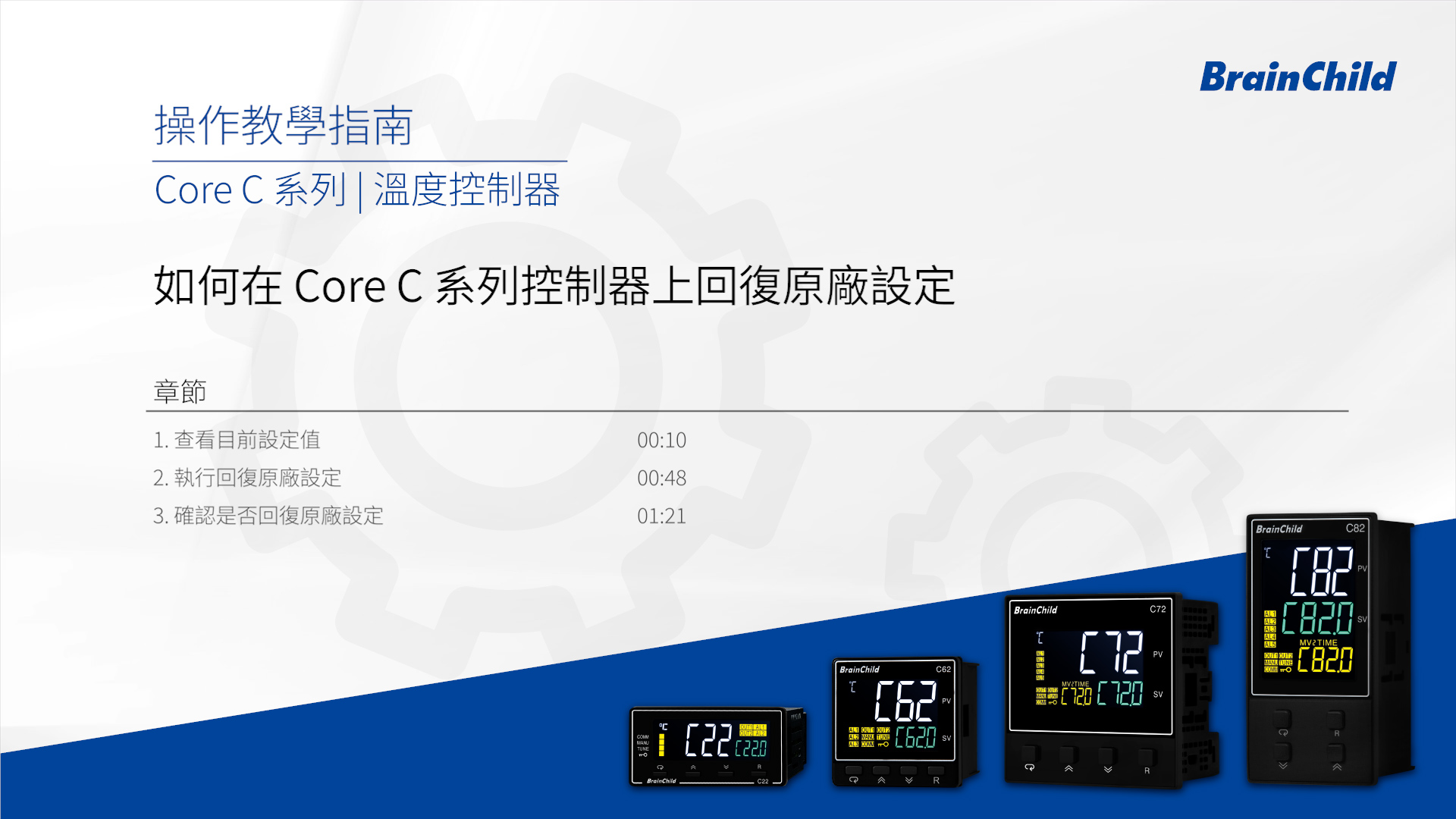 如何在 Core C 系列控制器上回復原廠設定